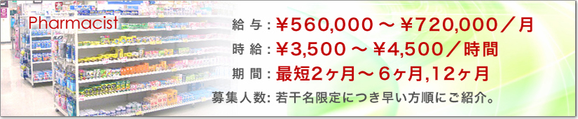 薬剤師アルバイト、シーズン契約社員など好条件・高額の仕事を希望される方、必見! |